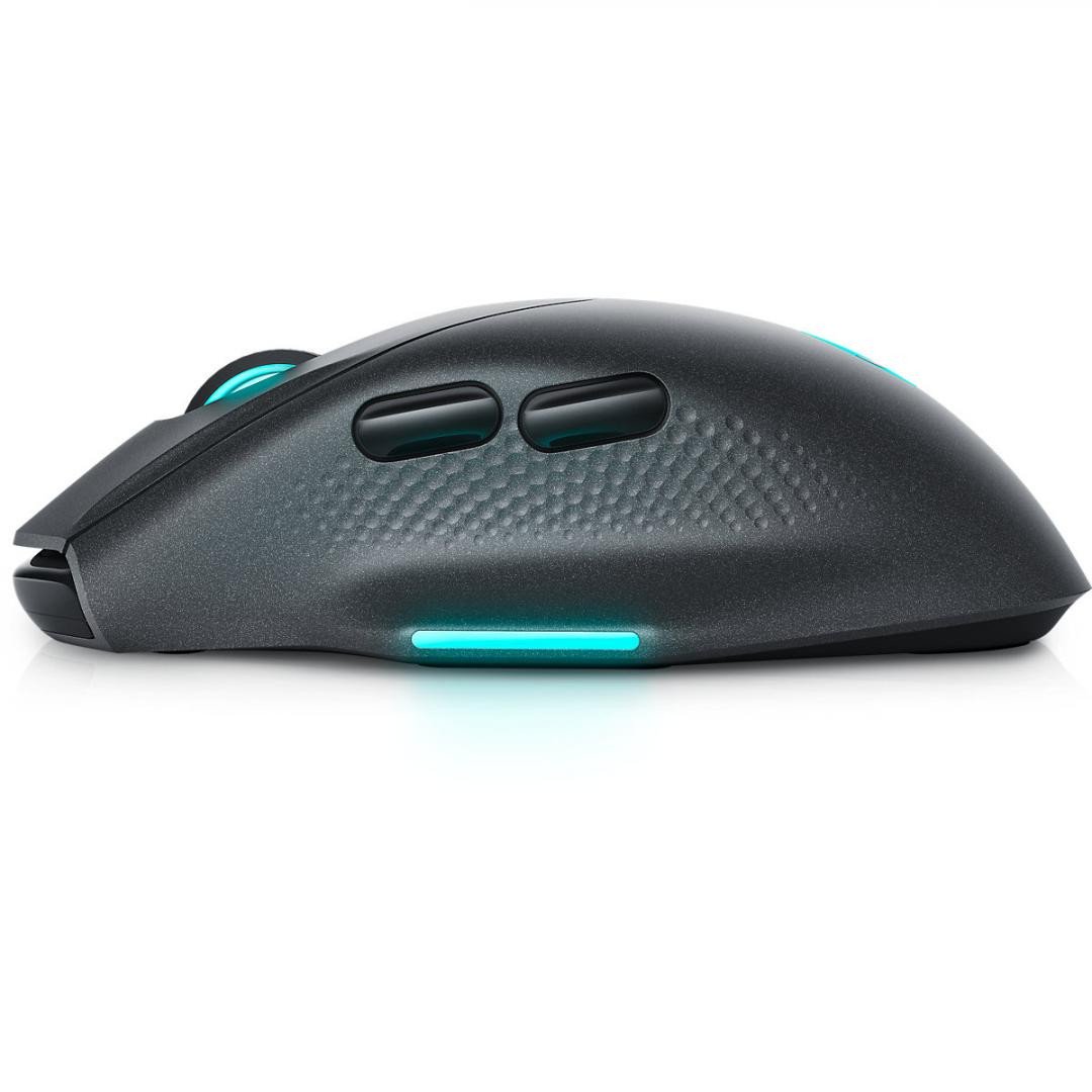AW Wireless Gaming Mouse AW620M Dark Side of the Moon, Connectivity: 2.4GHz Gaming Wireless, USB Wired, Performance: 1000Hz over Wired & 2.4GHz Gaming Wireless, Battery Life: Up to 140 Hours - 2.4GHz Gaming Wireless, Fast Charging: 5 minutes charge for up to 10 hours of gameplay, Battery technology: Polymer Li-ion Rechargeable Battery, Movement Resolution: Native 26,000 DPI, Sensor Max Speed: 650 IPS, Sensor Max Acceleration: 50G, Sensor Technology: Optical, Number of Buttons: 7 Fully Programmable Buttons, arranged, Click Lifespan: 70 Million for L/R Buttons, Lighting: 3 Zones 16.8 Million RGB, AlienFX, Cable Type: 2m Light Ultra-flexible Braided Cable, Colors: Dark Side of the Moon, Keyplate Structure: Magnetically-Assisted Independent Keyplates; Optical Switches, Charging Connector: 2-meter USB-A to USB-C light-weight, ultra-flexible nylon braided cable, OS Required: Windows 10 and up, Software Required: Alienware Command Center for customization, Features: Auto-calibration, detachable ultra-flexible nylon braided cord, 7 programmable buttons, 70 million clicks, 5 on-the- fly DPI settings, 16.8 million RGB AlienFX lighting, Dimensions: W x L x H 3.06 x 5.18 x 1.63 inches (77.8 x 131.5 x 41.5 mm), Weight: 0.22 lbs (100g), Service and Support Limited 2-year warranty