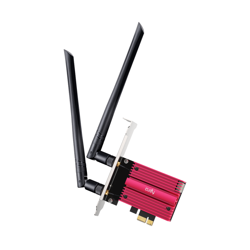 CUDY BE9300 Wi-Fi 7 Bluetooth 5.4 PCI Express Adapter with Heatsink, Intel BE200 module, Tri-band 2T2R, 5.8Gbps@6Ghz+2.8Gbps@5GHz + 688Mbps@ 2.4GHz, 802.11be/ax/ac/a/b/g/n, Magnetized antenna base, 2 high gain detachable antennas