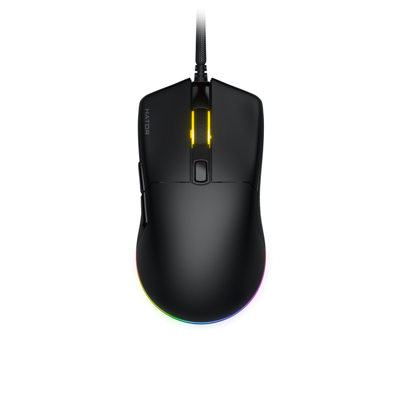 Mouse gaming cu fir Hator Pulsar 3, conectivitate USB, polling rate pana la 1000Hz, senzor Optical PixArt PMW 3311, rezolutie maxima 12000 DPI, switch HATOR® Optical 100M, iluminare RGB 16.8M culori, side switch Kailh 3M, negru