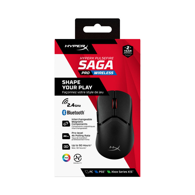 Mouse wireless HP Hyperx Pulsefire Saga Pro, rezolutie 26000 dpi, 6 butoane, HyperX 26K Sensor, Iluminare RGB, baterie 450mAh Li-ion, Autonomie 90 ore, negru