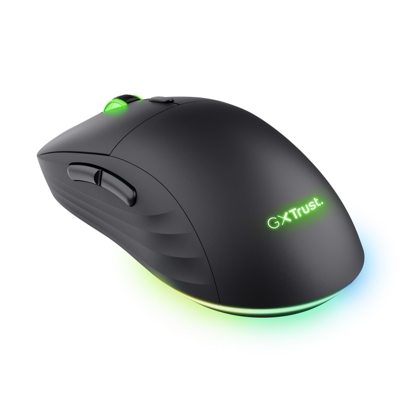 Mouse wireless Trust GXT 927 Redex+, rezolutie maxima 25600 DPI, senzor PAW3370, polling rate 125/250/500/1000Hz, iluminare full RGB, negru