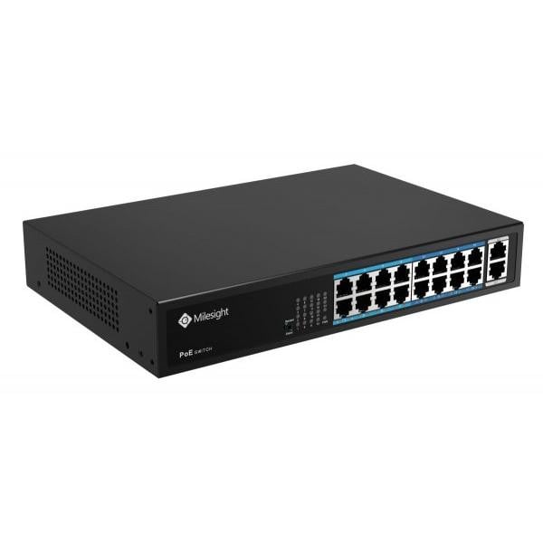 POE Switch Milesight 16 Porturi POE MS-S0216-GL, Porturi: 16X10/100MbpsPoEports(RJ45) +2X1000Mbps uplink ports, Alimentare: Built- in switching power supply AC 100~240 V, 50-60 Hz, 2.5A; Standard POE: IEEE802.3af/at; Buget POE: max. 200W, max 30W per port, Temperatura de functionare:-20℃~55℃; IP30