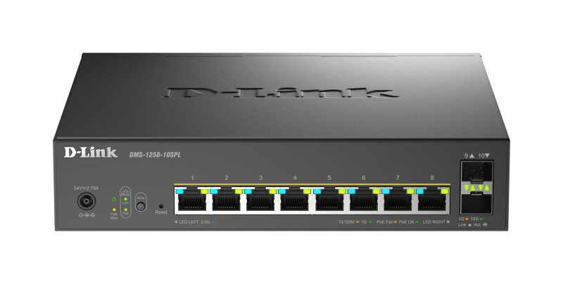 Switch D-Link DMS-1250-10SPL, 8 porturi Gigabit, 2 porturi SFP+, Protocol 802.3bt+802.3af/at, rackabil