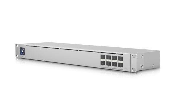 Ubiquiti UniFi Aggregation Switch, USW-Aggregation 8 X 10G SFP+, 160 Gbps switching capacity, 1.3" Touchscreen with AR switch management, Fanless, 4.7" depth compact enclosure, 1U Rackmountable (kit included), Managed by UniFi Network Controller, Enclosure Material; SGCC Steel, Forwarding Rate: 119.04 Mpps, SMB Layer 2 Gigabit Ethernet Switch.