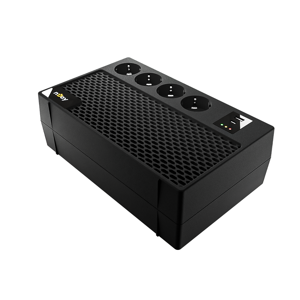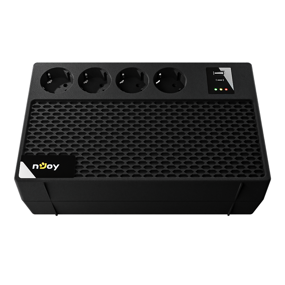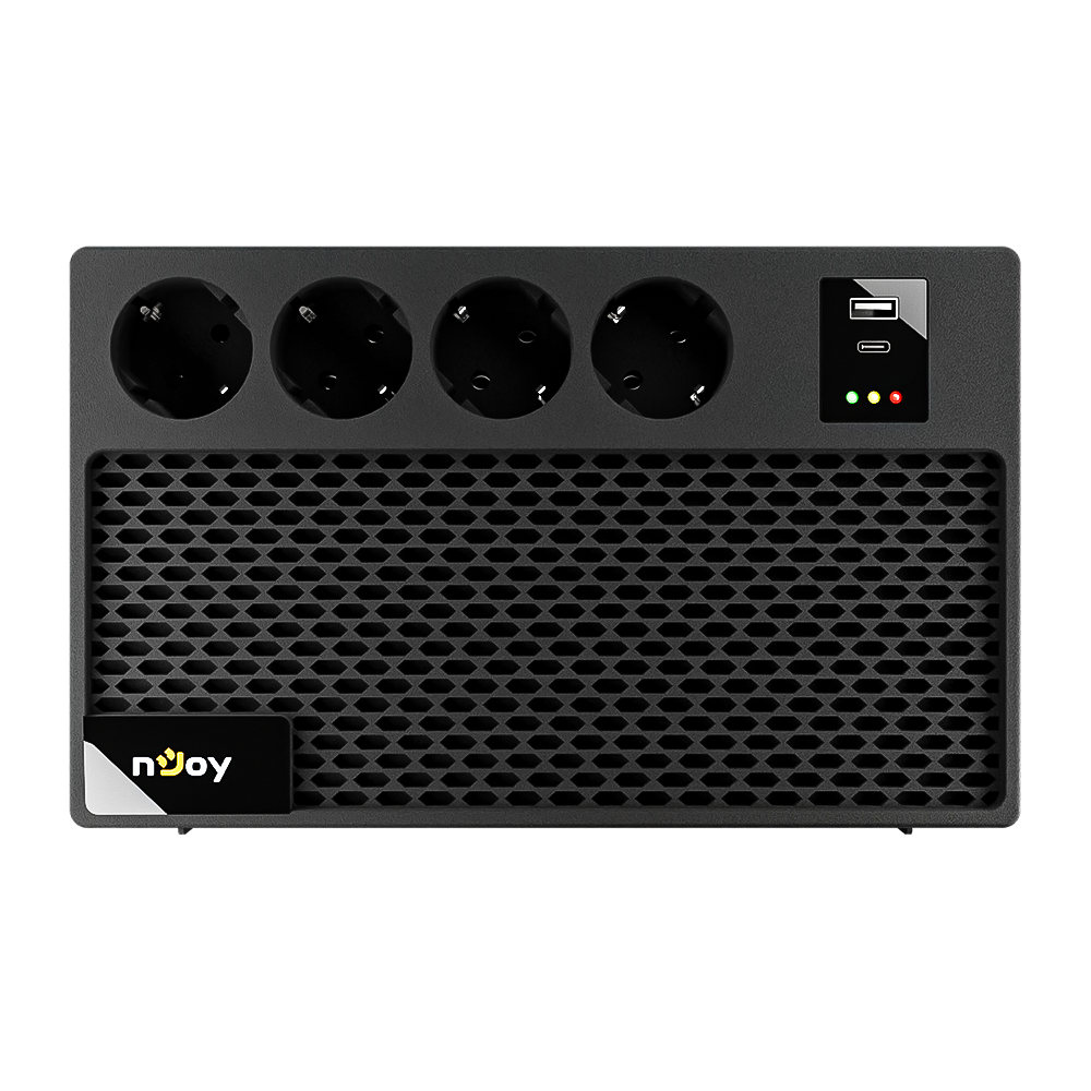 UPS nJoy Renton 650 Plus, 650VA / 360W, 4x prize Schuko conectate la baterie, 1x port incarcare USB Tip C 33W, 1x port de incarcare USB Tip A 18W, fara display LCD, tensiune nominala de intrare 230V Caracteristici Stabilizator (AVR) de tip Boost and Buck Functie auto-restart la revenirea tensiunii